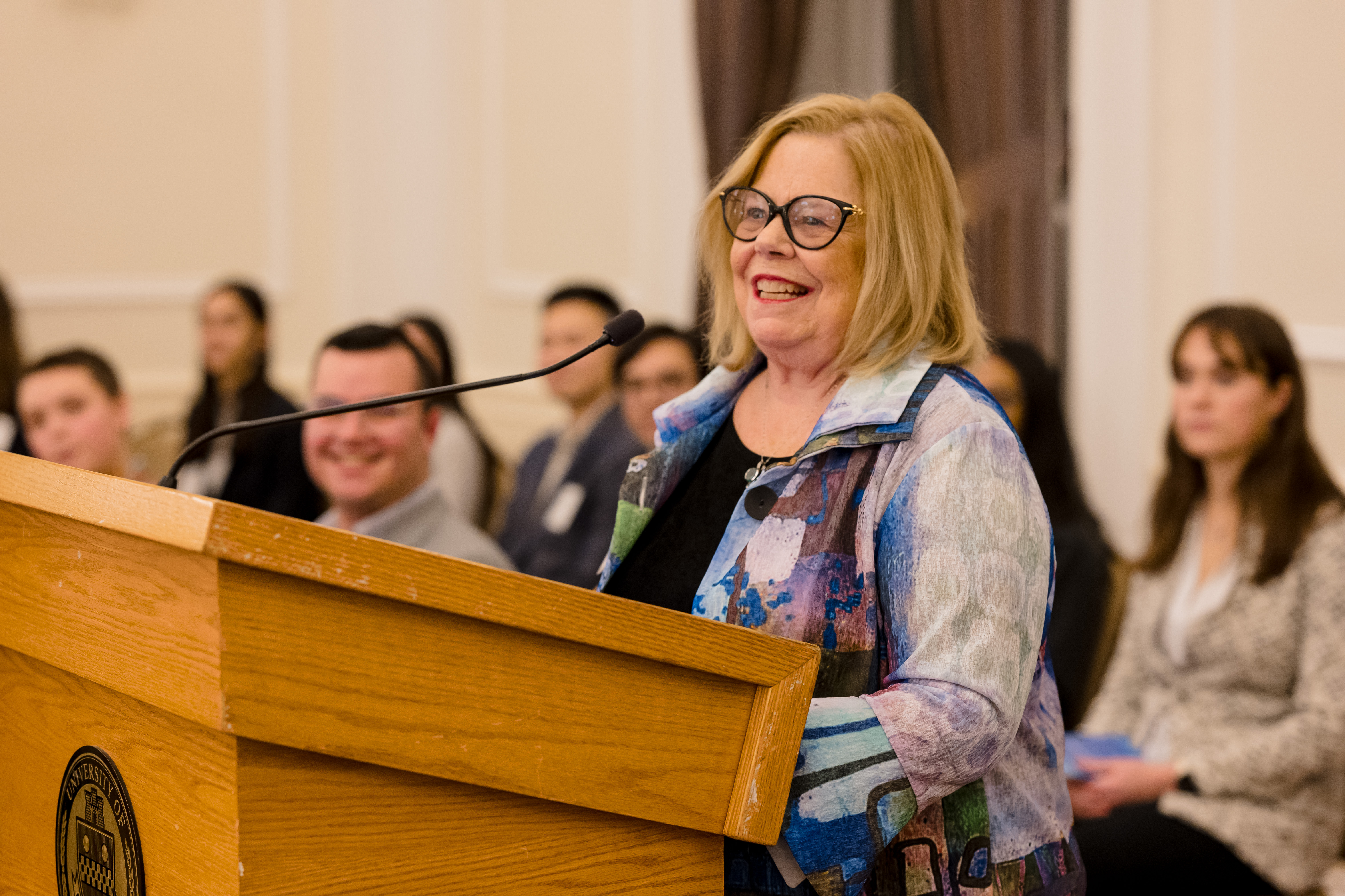 On October 30th the University of Pittsburgh hosted the Pittsburgh Chapter for our annual donor appreciation event at the University Club. After time for members, scholars, guests, and university faculty and staff to snack on hor d’oeuvres while socializing, Co- President Anne Crawford began the evening’s program. Our featured speaker was Adam Leibovich, PhD, the University of Pittsburgh’s Bettye J. and Ralph E. Bailey Dean, Kenneth P. Dietrich School of Arts and Sciences, College of General Studies. As always, the highlight of the evening was hearing from our scholars. Third year scholars Sam Nance, Carnegie Mellon University, and Giannina Ramirez, University of Pittsburgh, described their research. Additionally, each scholar shared a fun fact about themselves. The last speaker was Beth Wainwright, national president of ARCS