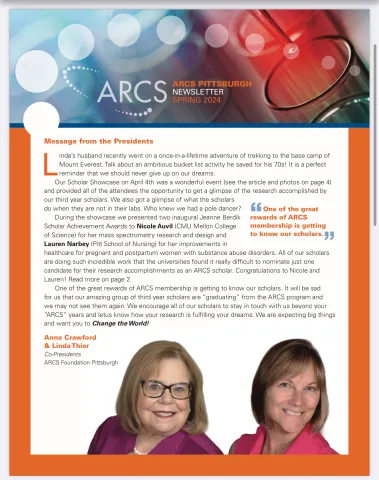 ARCS Pittsburgh Spring Newsletter Posted on Monday, April 29, 2024 VIew our Spring Newsletter Here: ARCS_Pgh_Spring_2024_Newsletter (1).pdf Log in or register to post comments Archives 2026 2025 2024 2023 2022 2021 2020 2019 2018 2017 2016 2015 2014 2013 2012 « ‹ › »